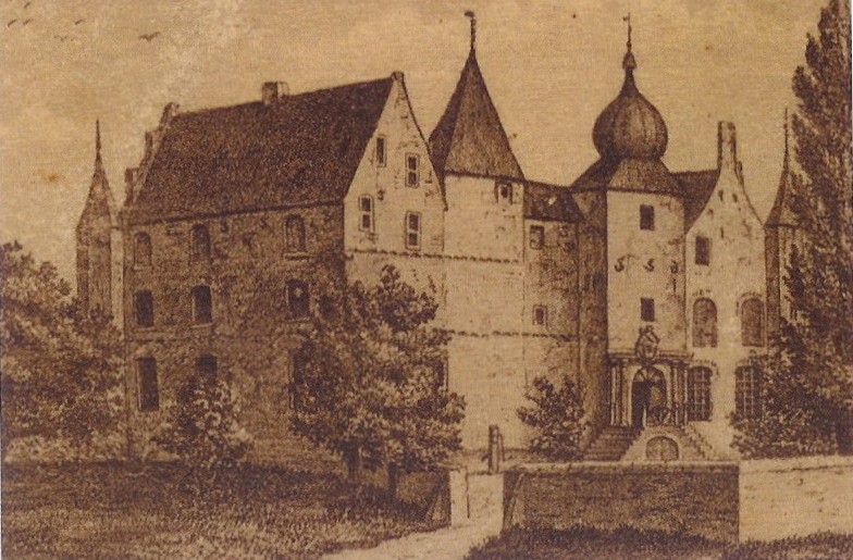 Der Torturm und die Freitreppe stammen aus der Zeit von 1750. Das Wappen der Familien Rohe (van Obsinnig) und Kettler befindet sich noch immer über dem Eingangsportal.